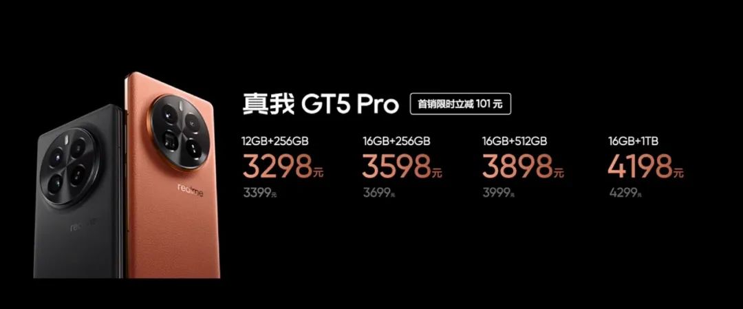 realme真我手机举行新品发布会,正式发布真我GT5 Pro,全版本售价公开,12GB+256GB版本首发限时3298元,16GB+256GB版本首发限时3598元,16GB+512GB版本首发限时3898元,16GB+1TB版本首发限时4198元。该款产品将于今日15:30开启预售,12月14日10:00全渠道开售。