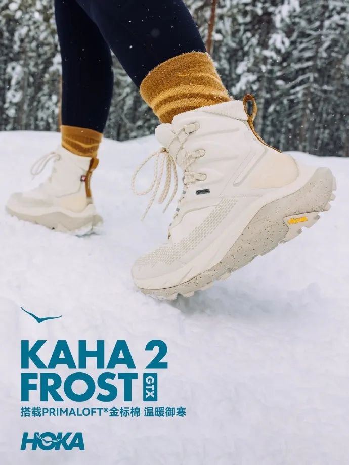 近日,鞋服品牌HOKA ONE ONE推出全新徒步鞋款KAHA 2 FROST GTX和KAHA 2 FROST MOC GTX,延续KAHA 2轻量缓震的舒适脚感,全新升级鞋面科技,打造可抵御-32°C的保暖性能。