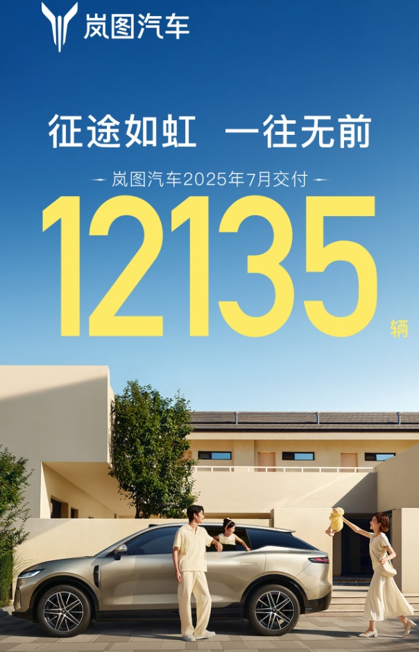 岚图汽车宣布,7月交付12135辆,同比增长102%。