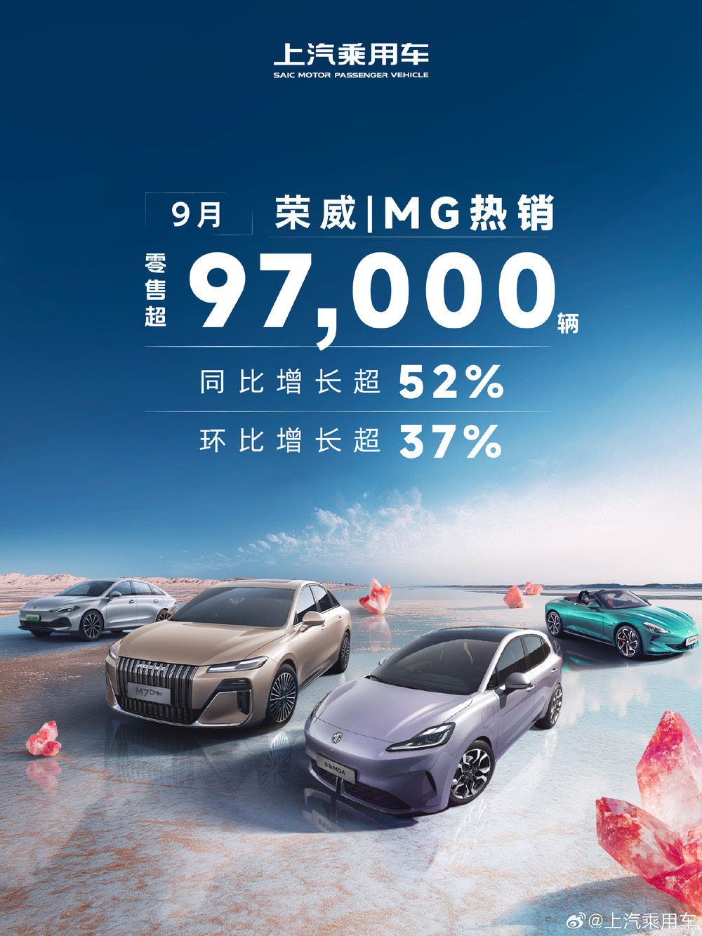 上汽乘用车(荣威、MG 等):9 月零售超 9.7 万辆,同比增长超 52%、环比增长超 37%。