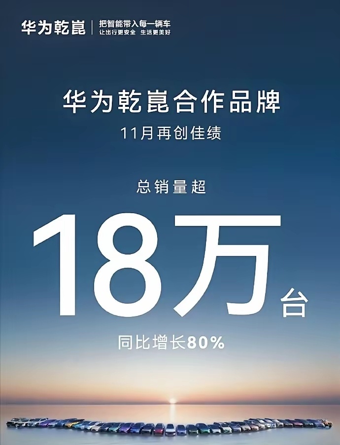 华为乾崑伙伴品牌 11 月总销量超 18 万台