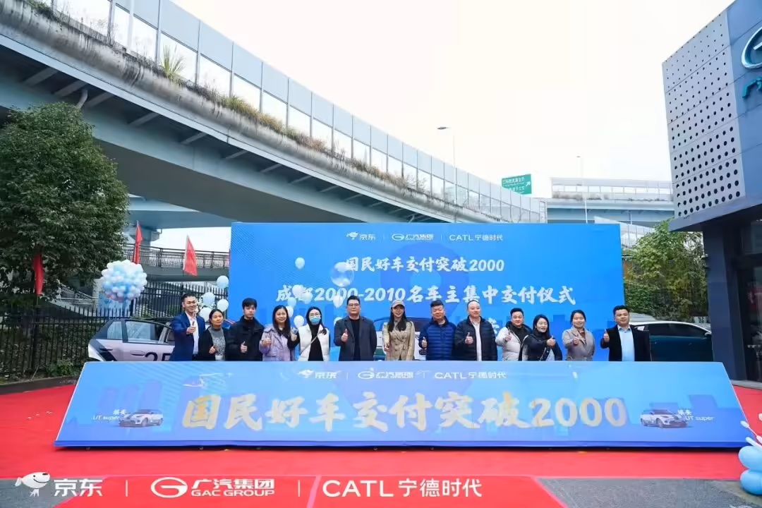 据宁德时代巧克力换电消息,距第 1000 辆车交付过去一周后,由宁德时代、京东、广汽集团联合推出的“国民好车”埃安 UT super 开售 14 天累计交付量突破 2000 台。