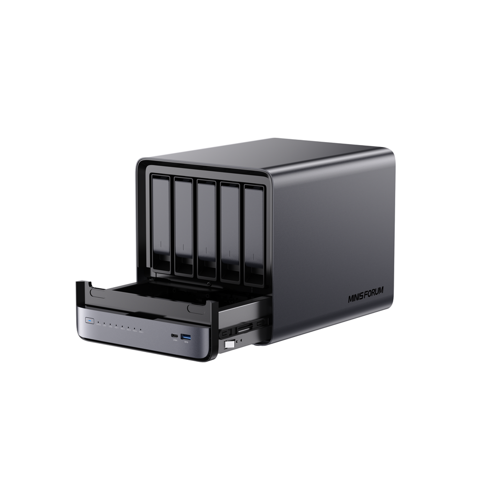 N5 Pro 搭载 AMD 锐龙 AI 9 HX PRO 370 处理器(12 核、最高 5.1GHz)及最高 80 TOPS 算力,为家庭与小型团队重新定义安全与智能的存储体验。其支持最高 144TB 混合存储(5 个 HDD + 3 个 SSD)、最高 96GB DDR5 ECC 内存,并通过原生 PCIe x16 与 OCuLink 接口提供强大扩展能力。N5 Pro 搭载 MinisCloud OS,可支持本地大模型部署、强化隐私保护,并实现多样化的 AI 应用,包括智能照片库、安全媒体中心、工作数据保险库、智能家居数据管理等。