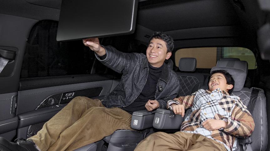 任先生和儿子一起体验全新 ES8 的座舱功能