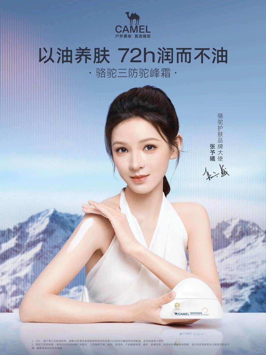 12月5日,骆驼官宣演员张予曦成为其护肤品牌大使。品牌以“「予」你满分水润,秋冬与「曦」同行”为喻,作为此次携手的宣传语。
