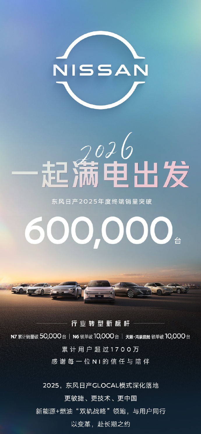 东风日产 2025 年度终端销量突破 60 万辆,累计用户超 1700 万。